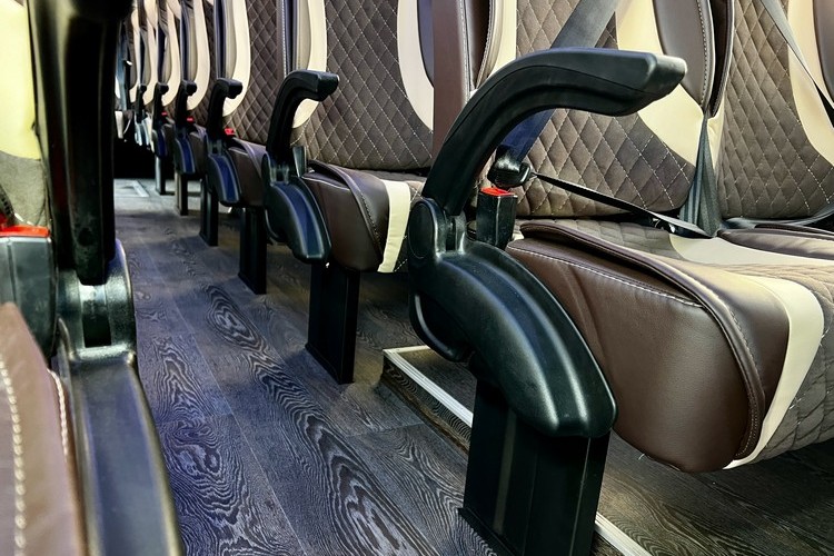 Городской автобус оборудован жёсткими сидениями для коротких маршрутов. Но мы хотим, чтобы пассажиры могли спокойно путешествовать на большие расстояния. Поэтому выбросили старые сидушки и выбрали мягкие комфортабельные туристические кресла с боковой поддержкой, с регулировкой наклона спинки, подлокотниками и ремнями безопасности. Такие сиденья выдерживают долгие рейсы и гарантируют пассажирам комфорт.