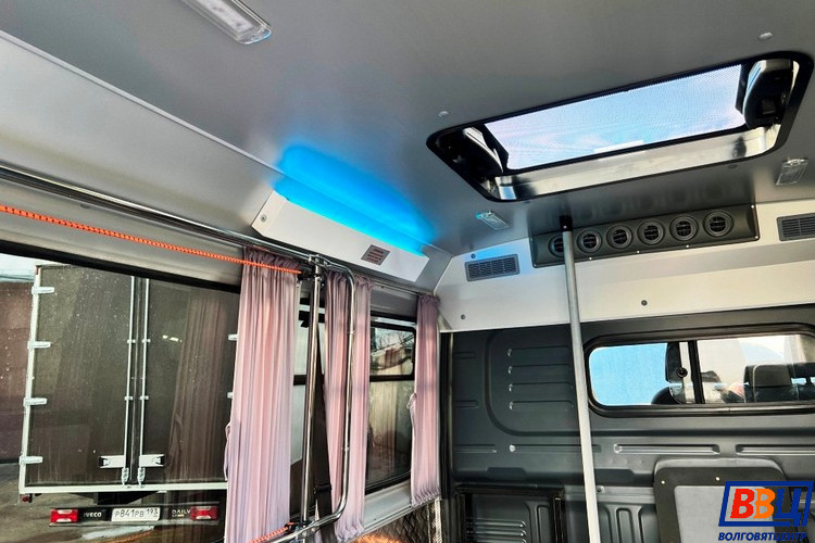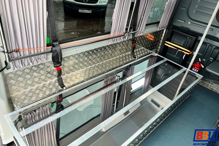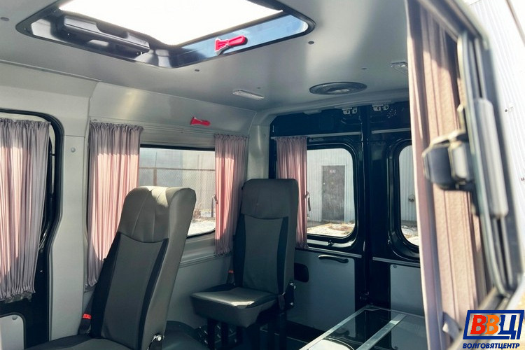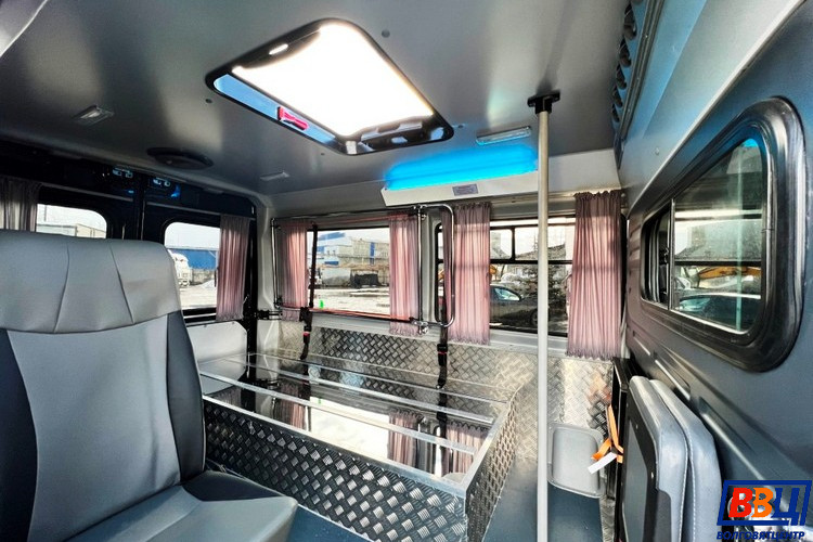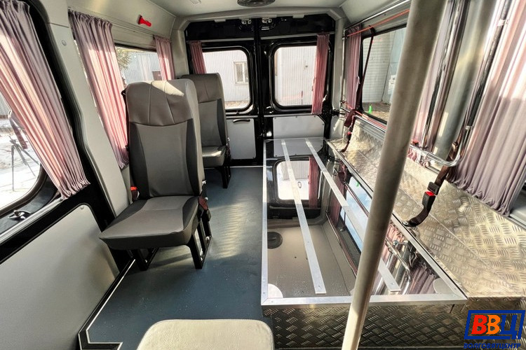 2. Переоборудование под катафалк. Сейчас автомобиль СОБОЛЬ НН 4х4 находится на участке сборки, где наши опытные мастера занимаются его переоборудованием в катафалк с комфортными местами для 2+2+1 пассажиров.