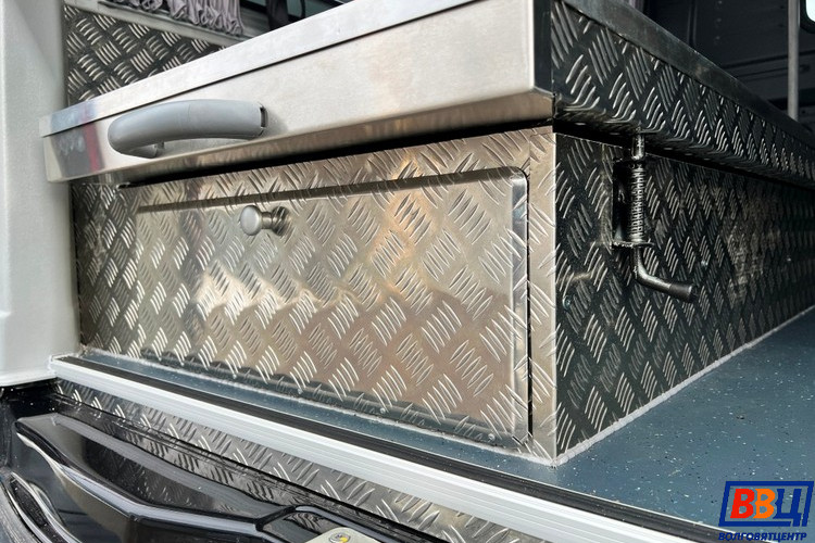9. Отделка порога сдвижной боковой двери - материал «Рифленый алюминий».