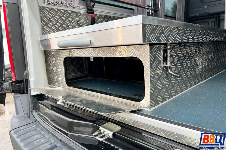 6. Подножка металлическая под задним бампером и во всю ширину распашных задних дверей.